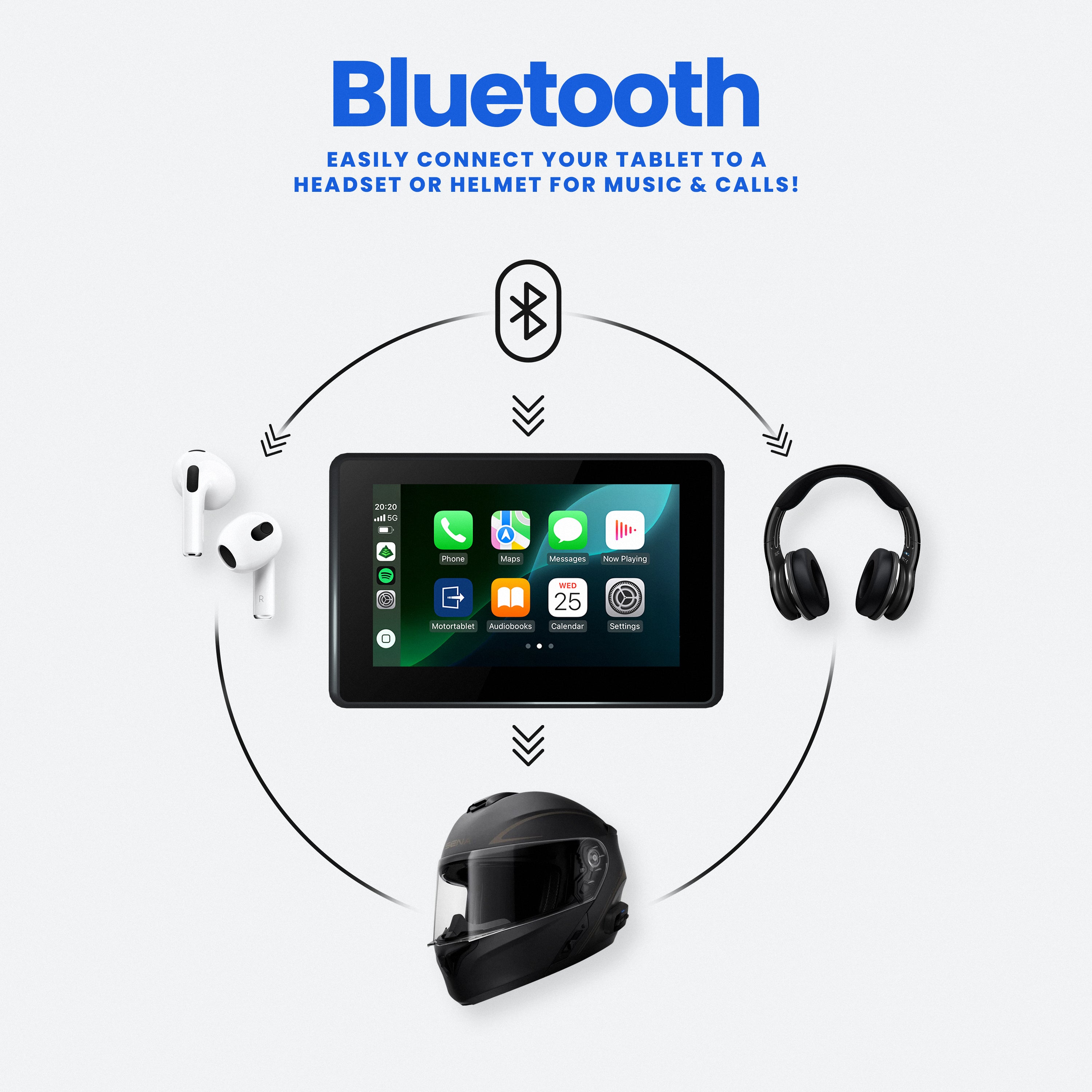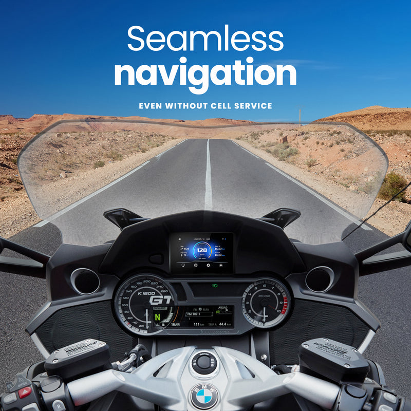 Seamlessly connect your Cardo, Sena, or any Bluetooth headset to the MotorTablet BMW 5 inch. Listen to navigation, your favorite music, and take advantage of hands-free voice control for a safer ride.
