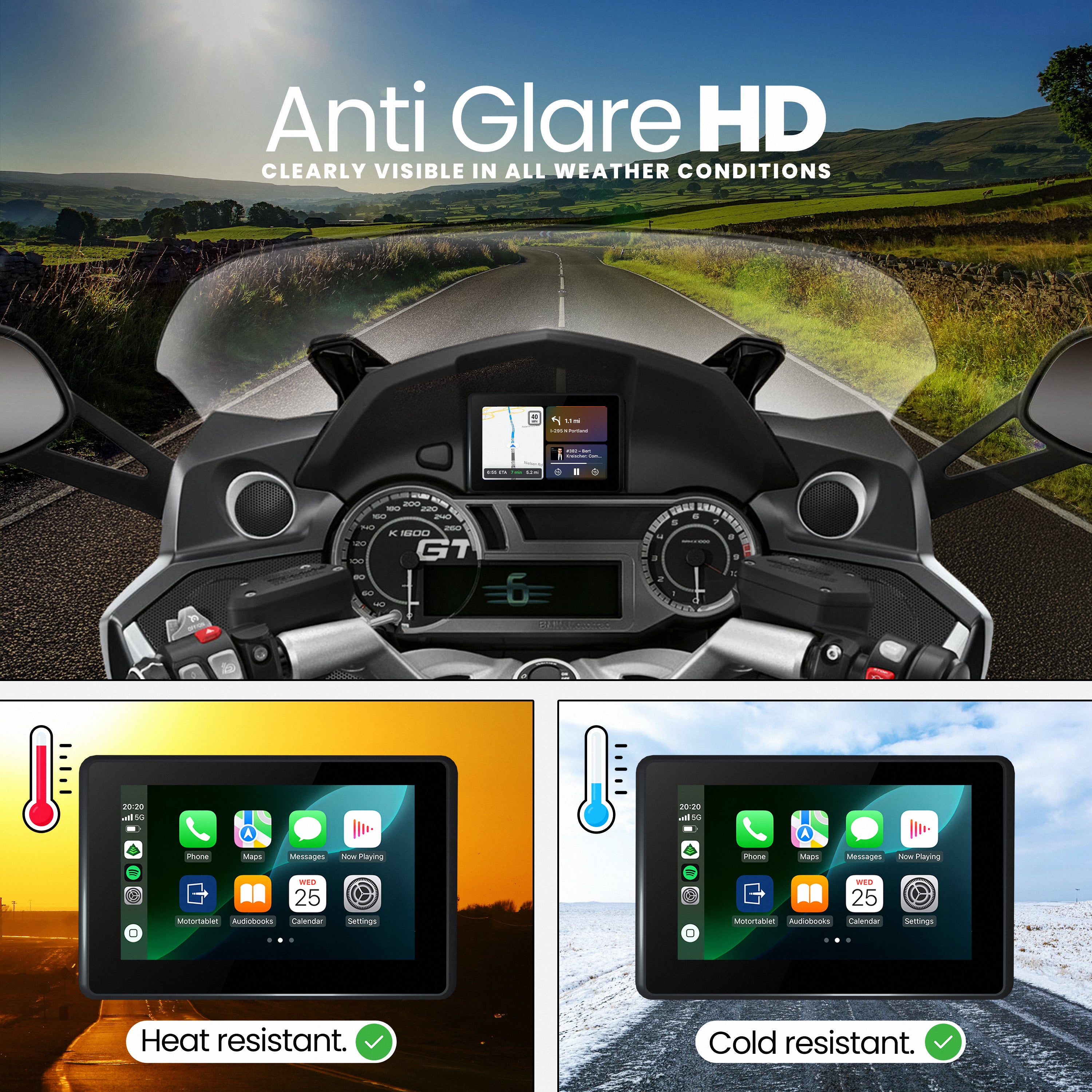 Yes! The MotorTablet BMW 5 Inch fully integrates Apple CarPlay and Android Auto, giving you seamless access to navigation, calls, music, and voice assistants, all on a touchscreen that works with gloves.